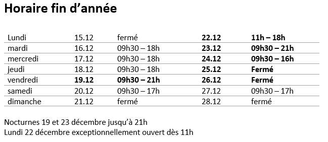 Horaires d'ouverture